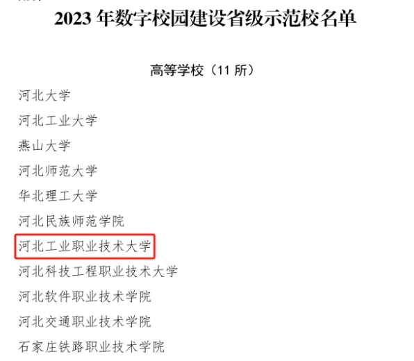 近日,河北省教育厅公布了河北省首批数字校园建设省级示范区(校)遴选结果,我校被认定为首批数字校园建设省级示范校。